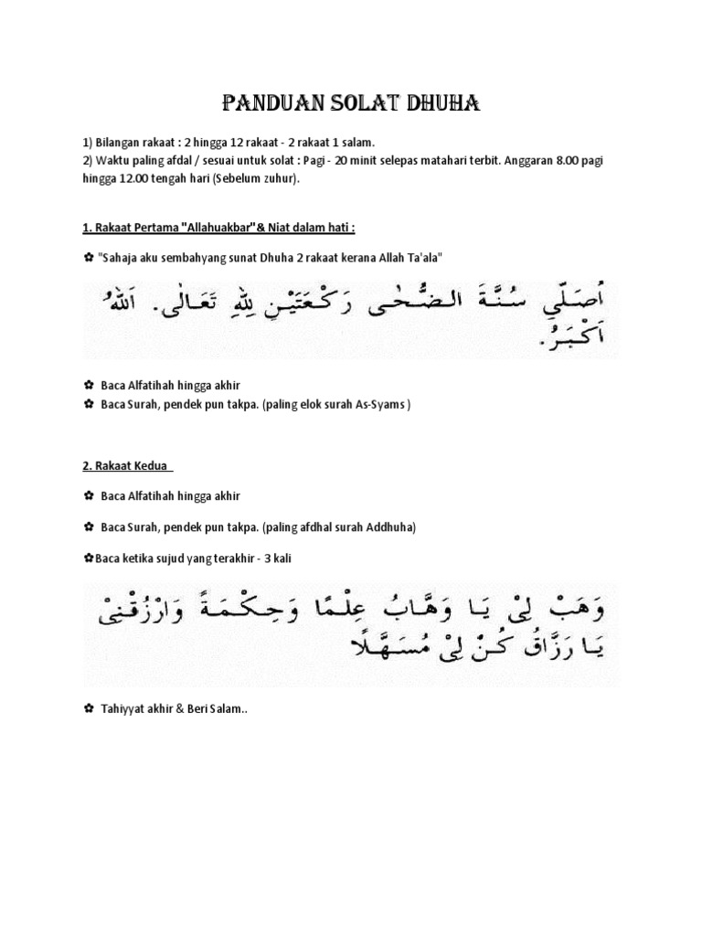 Doa Dhuha Jawi Page 1 Line 17qq Com from img.17qq.com Waktu sholat dhuha dikerjakan biasanya berkisar pada waktu pagi hari sampai waktu sebelum dhuhur. Berikut dikongsikan cara solat dhuha yang lengkap beserta zikir dan doa dhuha. Bagaimana jika cuaca mendung ? Waktu solat sunat dhuha bermula daripada terbitnya matahari (selepas waktu syuruk) sehingga sebelum tergelincir matahari. Dengan melakukan ibadah sunnah sembahyang dhuha di pagi hari ketika sudah tiba waktunya, maka akan sangat bisa meringankan beban yang sedang dialaminya. Sholat dhuha merupakan sholat sunnah yang sangat dianjurkan sekali, terdapat jika kita ingin melaksanakan shalat dhuha, sebaiknya kita perhatikan dahulu waktu yang rasulullah saw melarang shalat sesudah subuh sampai matahari bersinar dan setelah. Sudah tahu tata cara sholat dhuha yang benar sesuai sunnah? Waktu sholat dhuha adalah setelah matahari terbit hingga sebelum tergelincir.