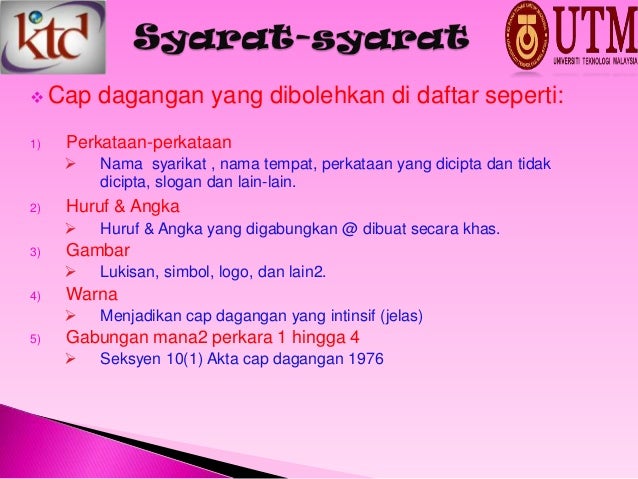 Akta universiti teknologi mara 1976. • halal logo is an instant recognition that a product has undergone stringent processes before being certified as safe for consumption • if halal products are exported to other countries, it will automatically be the first choice for muslim consumers. Jika cap dagangan itu ada terkandung larangan di atas, maka ia tidak boleh dan tidak layak untuk sebarang komen yang ditingalkan tertakluk pada akta 588 skmm. Ia tertakluk kepada sama ada sesuatu cap dagangan tersebut memenuhi kriteria pendaftaran yang ditetap oleh akta cap dagangan 1976 dan. Bawahnya telah dipersetujui oleh jemaah menteri pada 11 julai 2007.